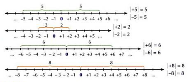 Sobre la recta numérica podemos verificar que el valor absoluto de cada par de números opuestos es siempre el mismo.