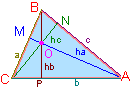 El punto O donde concurren las tres alturas se llama Ortocentro (O).
