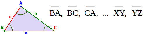 o por una letra minúscula (a, b, c) que corresponde a la letra que nombra el vértice opuesto (A, B, C).