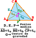 Es el segmento trazado desde un vértice hasta el punto medio del lado opuesto. Todo triángulo tiene tres transversales de gravedad, una por cada lado y se designan normalmente con la letra t y un subíndice que señala el lado (ta, tb, tc ).