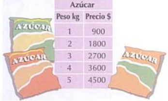 La variación de una magnitud en forma proporcional a otra se puede representar gráficamente.EJEMPLO 1: En su tienda de viveres, Camilo relaciona en una tabla el peso (en Kilográmos) del azúcar y el precio correspondiente. Vemos la tabla siguiente: