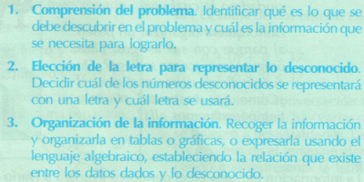 Hay problemas matemáticos que describen una situación en la que ciertas cantidades están relacionadas. Algunos números se dan en el problema y otros son desconocidos. El problema consiste en descubrir el valor de los números desconocidos usando la información dada. La relación que existe entre los números puede expresarse usando el lenguaje algebraico. Los pasos que podemos seguir para encontrar la expresión algebraica correspondiente son: