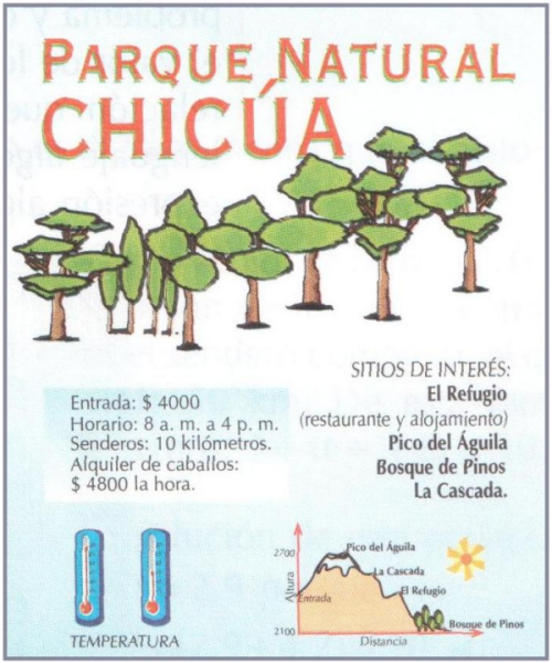Ejemplo 1: Leyendo el periódico, Darío encuentra la información de la figura sobre el parque natural Chicúa, distante \(45\) minutos de la ciudad en la cual vive.