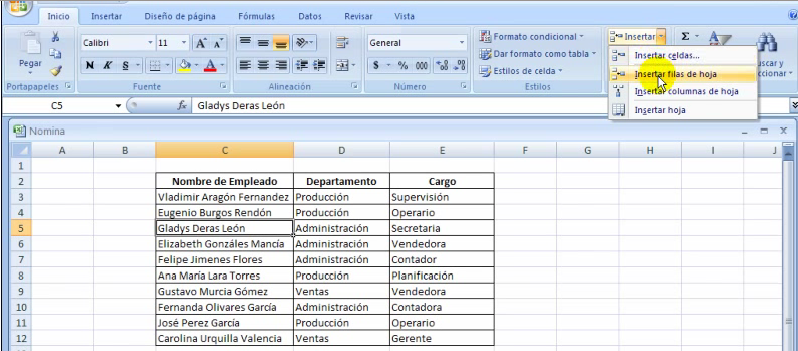 3 Lección: Insertar Filas.