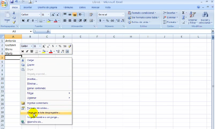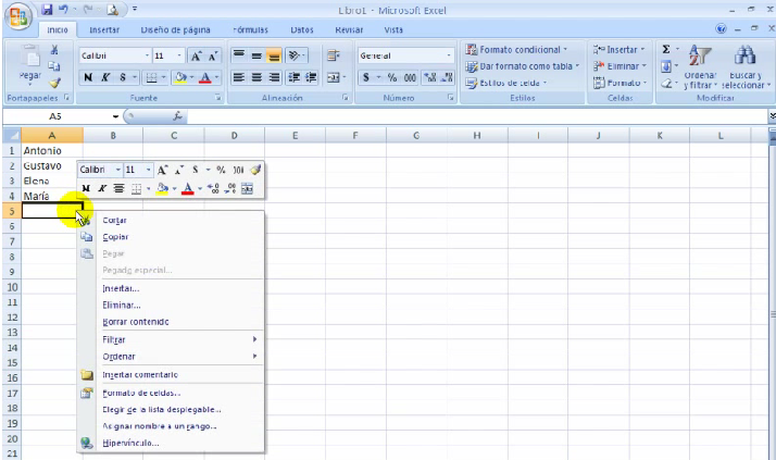 5 Lección: Listar datos en Excel.