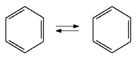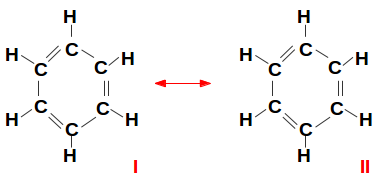 Así, pues, ni la fórmula I ni la II representan correctamente el benceno, ya que su verdadera estructura es una intermedia entre las dos, lo que se denota por la flecha de doble punta.