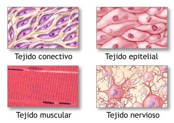 En los vertebrados se distinguen 4 tipos de tejidos: tejido de revestimiento, tejido conjuntivo, tejido muscular y tejido nervioso.