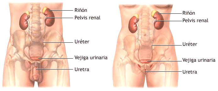 Son dos tubos o conductos angostos, que miden de 25 a 30 cm, que llevan la orina desde el riñón hasta la vejiga. Los músculos de las paredes del uréter continuamente se tensan y se relajan forzando la orina hacia abajo, fuera de los riñones.