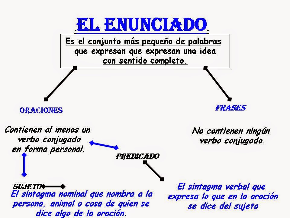 El Enunciado es la unidad mínima de comunicación que permite transmitir un mensaje. No se debe confundir con la Oración que es un esquema sintáctico con estructura definida.
