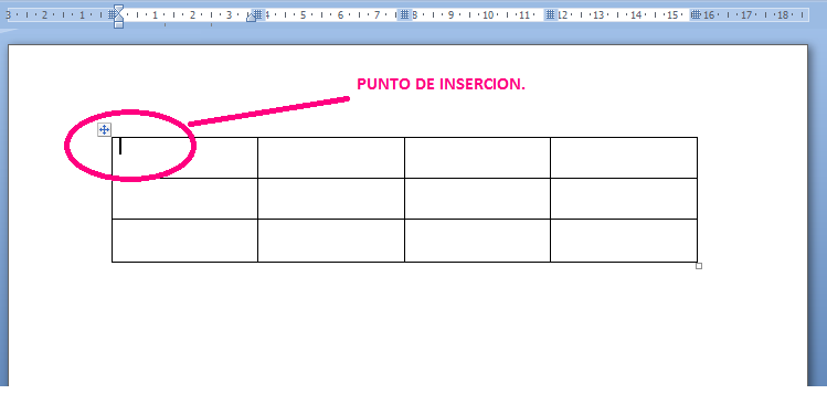 1. Dentro de la tabla ubicamos el punto de inserción.