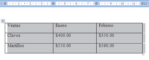 3.Si quisiéramos Centrar la tabla en la hoja de trabajo, sombreamos todas las celdas de la tabla.