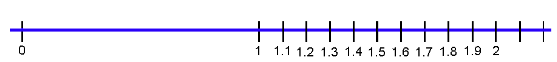 Si dividimos el segmento de extremos 1 y 2 en 10 partes iguales , podemos aproximar su valor a décimas como se ve en la siguiente tabla.
