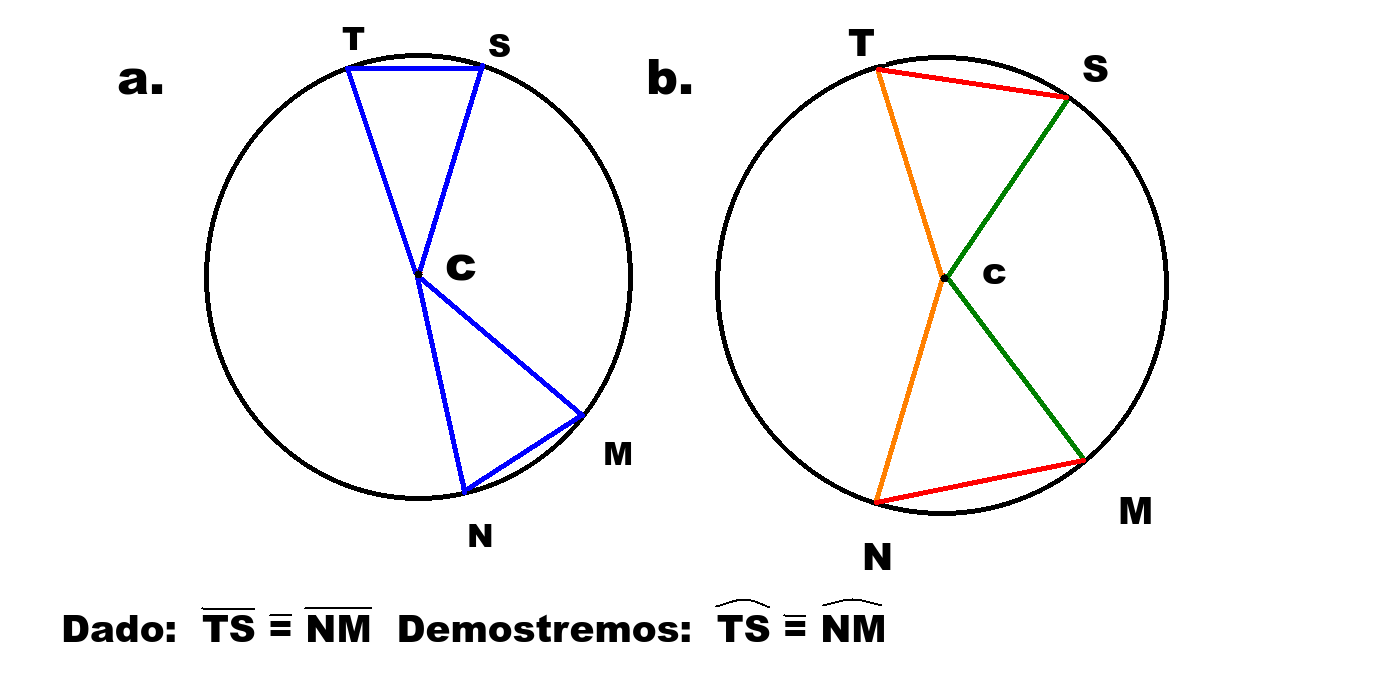 Demostremos ahora las relaciones que existen entre las cuerdas y los arcos asociados a ellas..