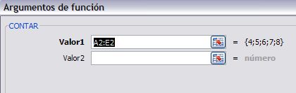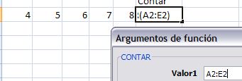 Sombreamos las celdas que deseamos contar, es decir el rango A2 a E2.
