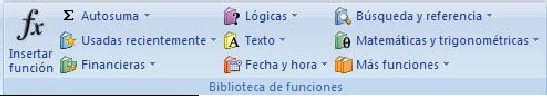 Las funciones son fórmulas que vienen predefinidas en Excel, están agrupadas en categorías .Categorías de las funciones predefinidas en Excel 2007.
